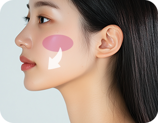 This area, located between the front cheekbones and deep fat pockets, loses volume in the skin, subcutaneous fat, and deep fat layers as we age. Meanwhile, the retention ligaments in the mid-face become relatively stronger, causing a noticeable difference in the sagging of upper and lower tissues, which leads to wrinkle formation.