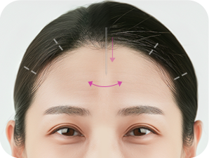 By cutting the retention ligaments and the eyebrow-lowering muscle, the natural lifting action of the eyebrow-raising muscle causes the forehead and eyebrows to lift. This also smoothens the forehead muscles, creating a natural volume.