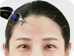 Once the desired position is reached, two secure points are fixed through the incision near the hairline, preventing the lifted scalp and forehead skin from rising again.