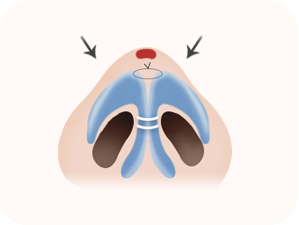 Excess fat tissue at the nasal tip is carefully removed, and the cartilage is reshaped to create a sharper and slender nose tip.