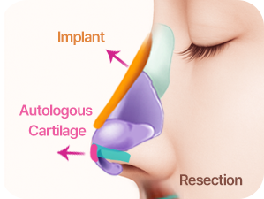 Through 1:1 consultations with specialists and precise diagnostic tools like 3D-CT, we reassess the optimal nasal shape and proportions for your face. We then adjust the implant size accordingly and perform meticulous corrections on the nasal bones, cartilage, and soft tissue.