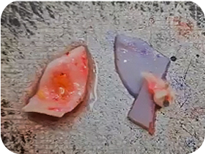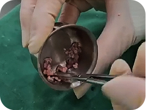 The harvested cartilage is finely ground using special surgical instruments.
