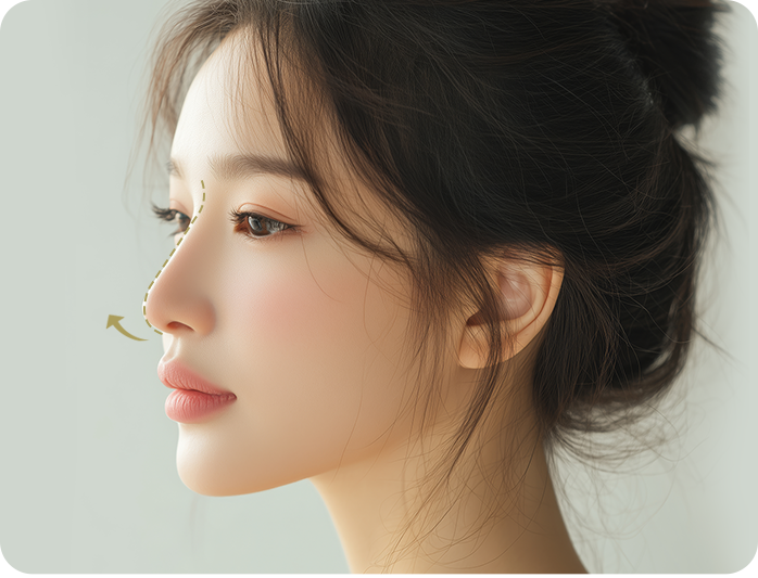 Simply increasing the height of the nose bridge can disrupt the harmony with the overall face shape. LaBom's low nose surgery designs the nose with appropriate height and width, considering the overall facial contour and each individual’s anatomical features.