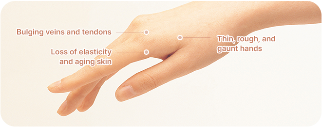 The skin on the hands is thinner and has less fat than other areas, making it more vulnerable to external stimuli. Frequent exposure to water and detergents causes the skin on the hands to age faster, becoming thinner, rougher, and losing elasticity. Hand dorsal fat grafting is an effective method to improve visible veins, tendons, and restore a youthful appearance.